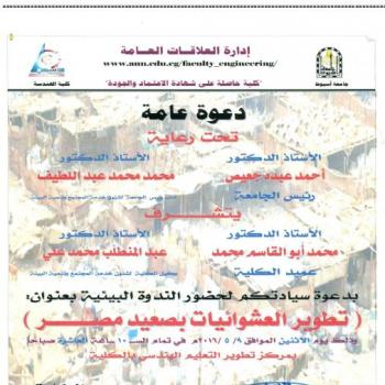 The faculty of engineering will hold a symposium about Developing Slums in Upper Egypt on sunday 9-5-2016 at 10:00 a.m. in the Education Development Center.