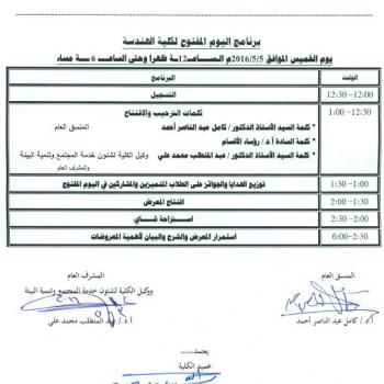 The faculty of engineering will hold an open day on Thursday 5/5/2016 from 12:00 to 6:00 a.m.