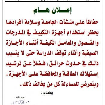 Assiut University took some procedures to save electricity and protect computers and devices. As A result of this, air conditioners  will not be allowed to be used during holidays and anyone who…