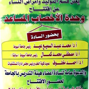 Prof. Mohammed Abdel Samiea, President of Assiut University opened the Assisted Fertilization Unit at the Women's Health Hospital, Assiut University. Prof. Abdel-Samiea was accompanied by Prof.…