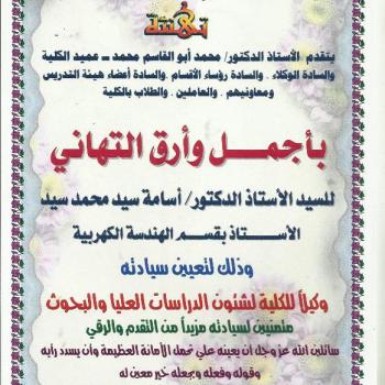 The dean of the faculty professor Muhammad Abu El-Kasem would like to congratulate professor Osama Sayed Muhammad Sayed for being elected as the vice dean for graduate studies wishing him all the…