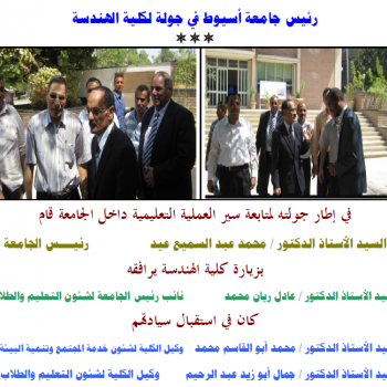 The president of assiut university, professor Muhammad Abd EL-Samie Eid, visited the faculty of engineering in his tour to ensure the stability of the educational process. Professor Muhammad Abd EL-…