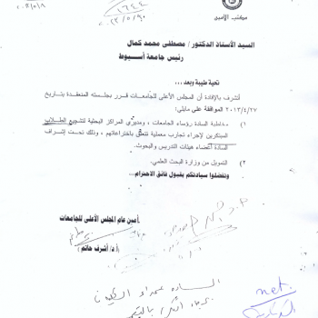 The Supreme Council of Universities asks the presidents of the universities to make the innovative students do their researches in the laboratories under the supervision of the faculty members.