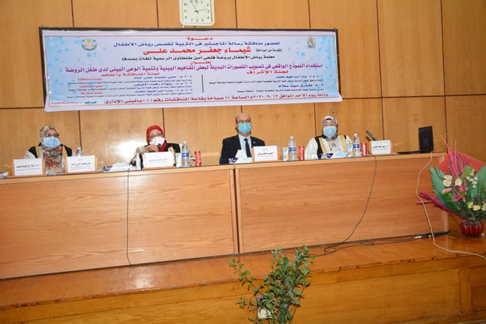 Vice-president of Assiut University for graduate studies and research affairs attends the discussion of the first master's thesis in the Faculty of kindergarten Education.