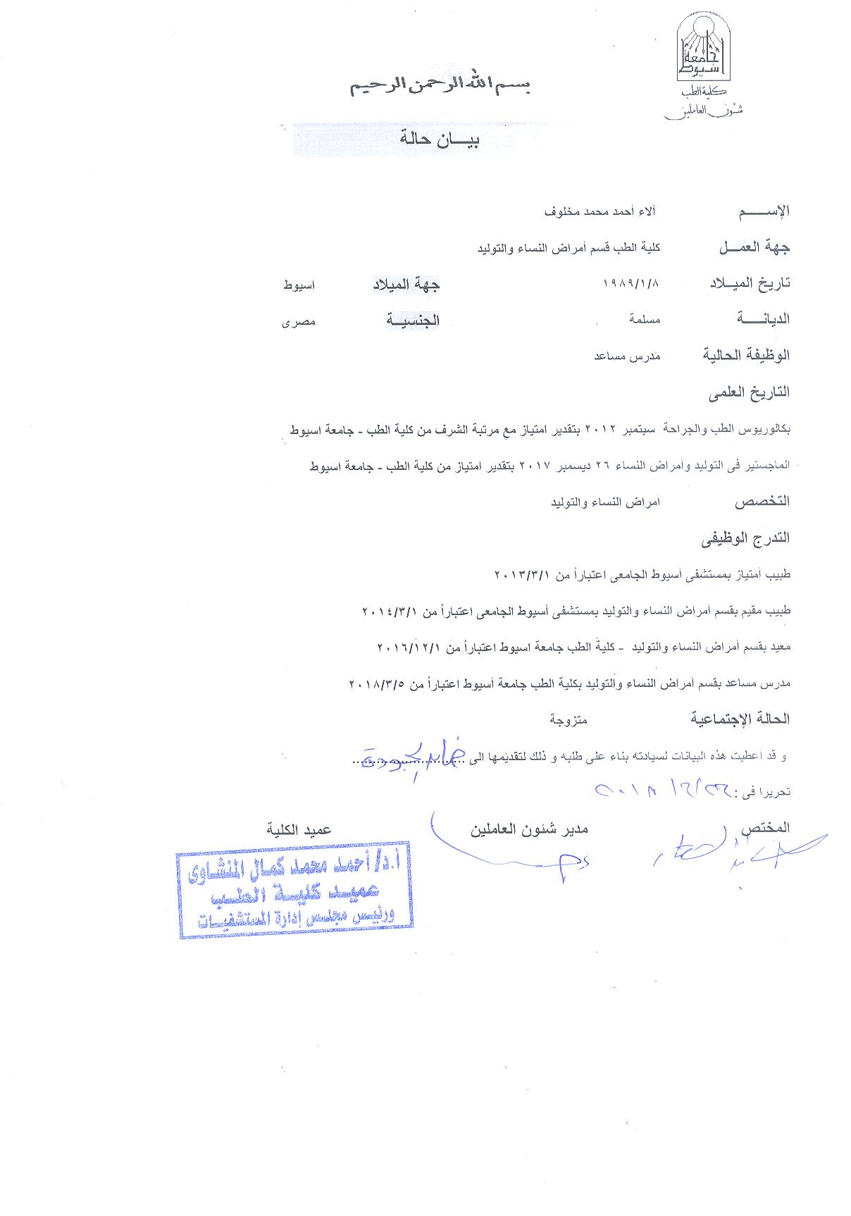 Assistant Lecturer Faculty of Medicine, ِِAssiut University , 2018