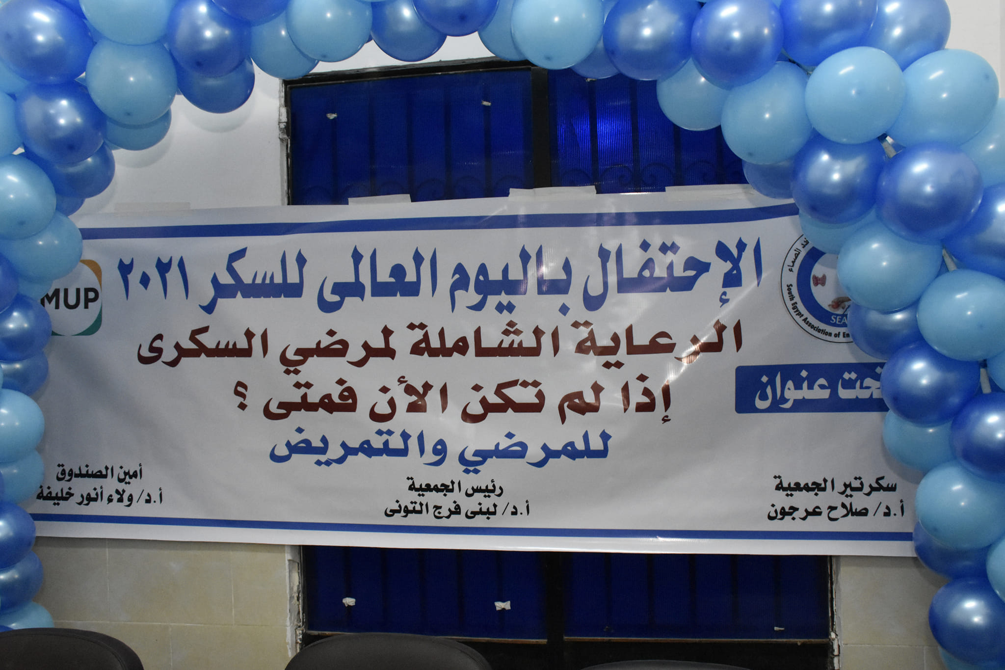وبهذه المناسية اقامت جمعية جنوب مصر للسكر والغدد الصماء برئاسة ا. د/لبني التوني استاذ الباطنه والغدد الصماء ندوة تثقيفية للتمريض والمرضي للإجابة علي بعض الأسئلة فيما يتعلق بمريض السكر والضغط.