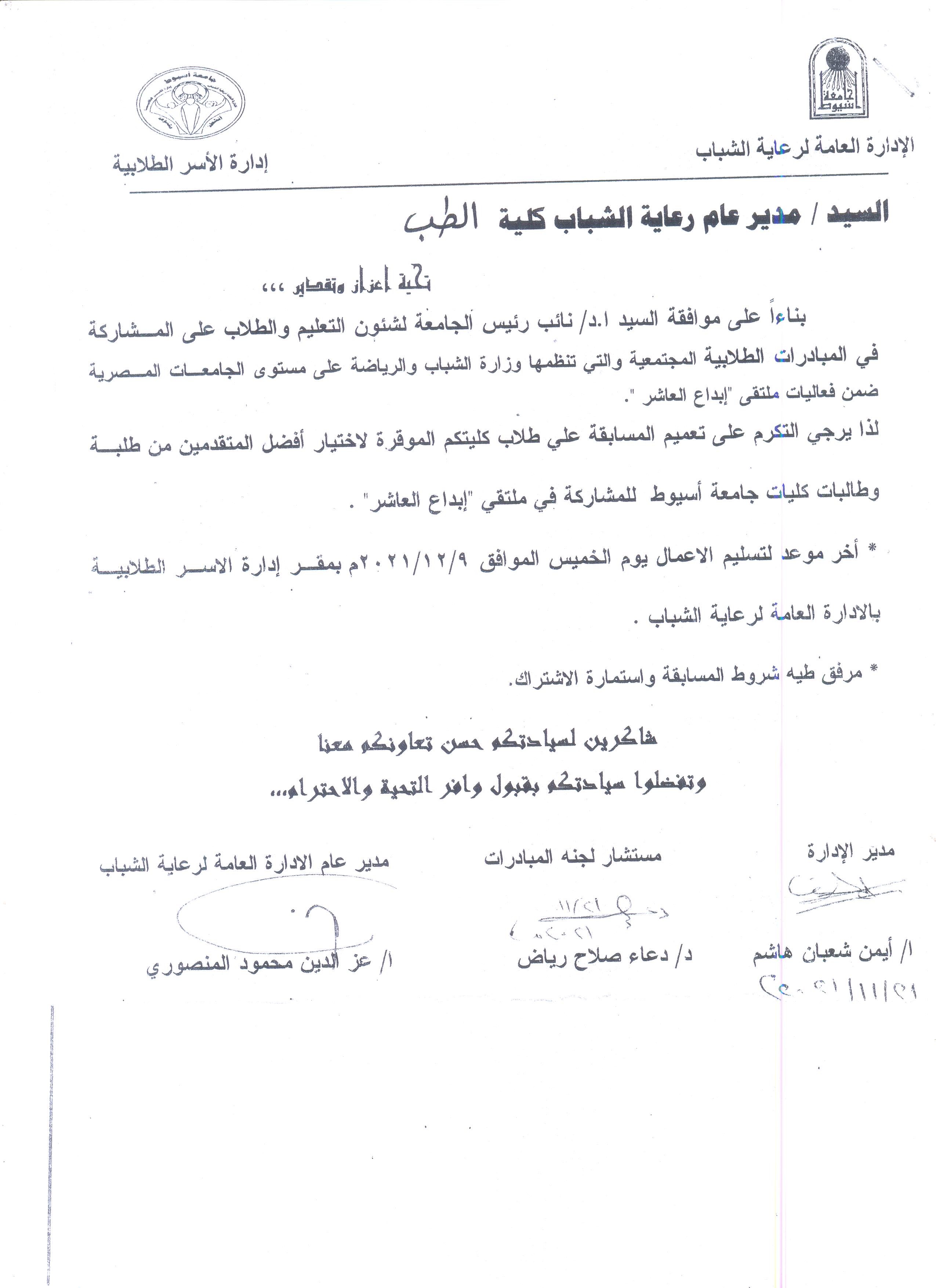 إعلان عن المشاركة فى مسابقة ( إبداع العاشر ) للطلاب