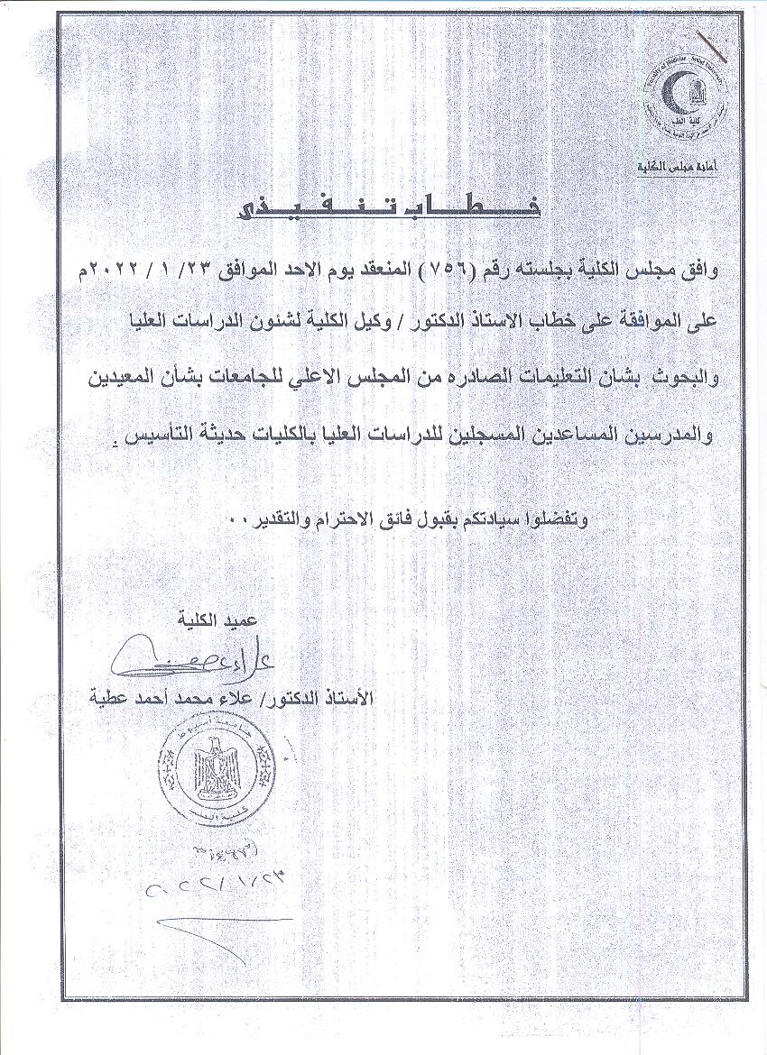 التعليمات الصادرة من المجلس الأعلى للجامعات بشأن المعيدين والمدرسين المساعدين المسجلين للدراسات العليا بالكليات حديثة التأسيس 24 يناير 2022
