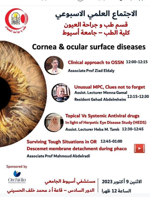 يدعوكم قسم طب و جراحة العيون كلية الطب بجامعة أسيوط لحضور اللقاء العلمي الاسبوعي للقسم
