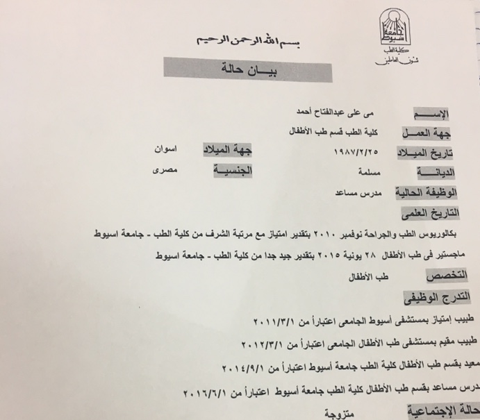 مدرس مساعد كلية الطب , جامعة أسيوط , 2016