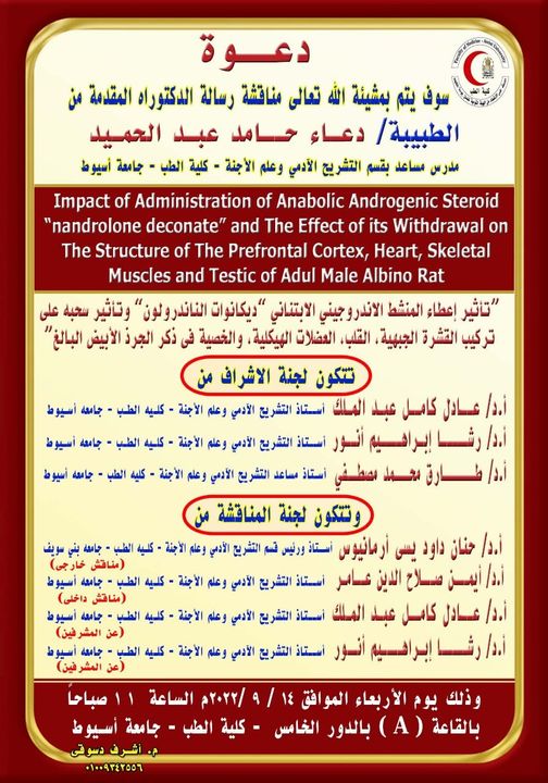 مناقشة رسالة الدكتوراة المقدمة من الطبيبة - دعاء حامد عبد الحميد - قسم التشريح الآدمى وعلم الأجنة 13 سبتمبر 2022