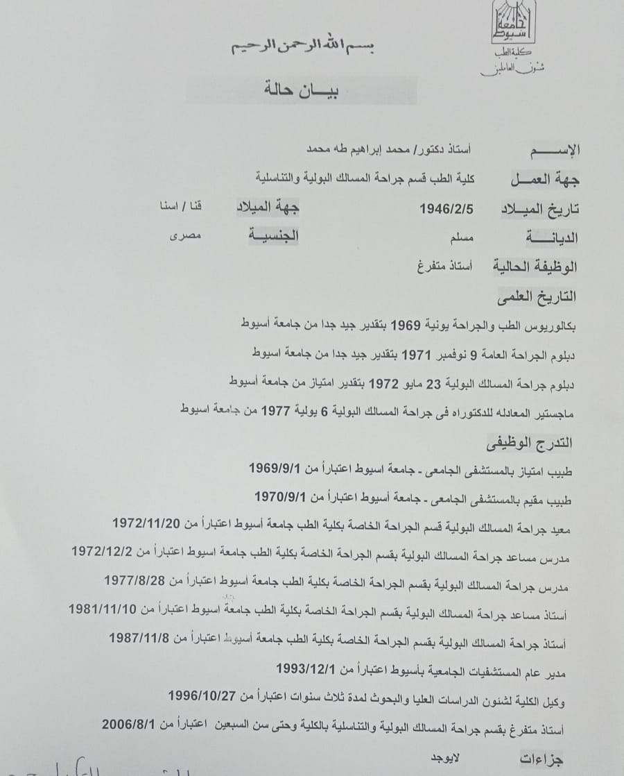 أستاذ متفرغ كلية الطب , جامعة اسيوط , 2006