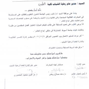 تحت رعاية أ. د/علاء عطية عميد كلية الطب ورئيس مجلس إدارة المستشفيات الجامعية