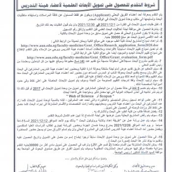 شروط التقدم للحصول على تمويل الأبحاث العلمية لأعضاء هيئة التدريس