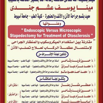 مناقشة رسالة الماجستير الخاصة بالطبيب/ مينا يوسف عشم جندي الطبيب بقسم جراحة الأنف والأذن والحنجرة