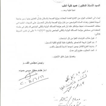 قبول طلبات المرشحين من وزارة الصحة والسكان للحصول على الدرجات العلمية - قسم المسالك البولية