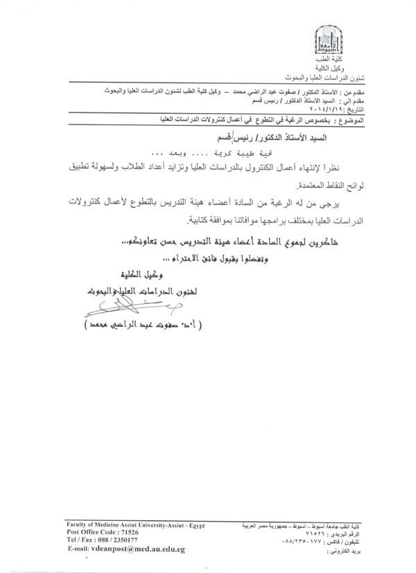 التطوع في أعمال كنترولات الدراسات العليا