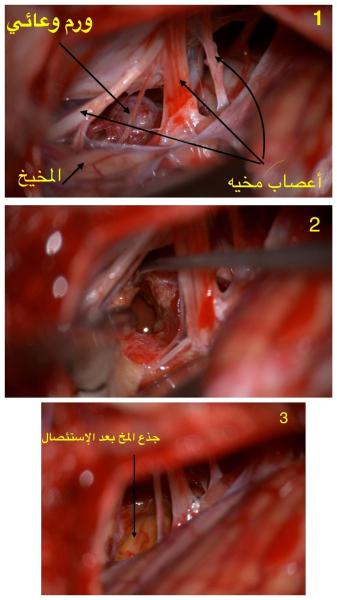 وقام الفريق الطبي ب​اختيار مدخل جراحي آمن للوصول لعمق المخ، وذلك من خلال ​استخدام أحدث تقنيات المجهر الجراحي للتحكم في الأوعية الدقيقة دون الإضرار بالأنسجة العصبية المحيطة بالورم.