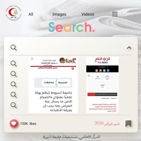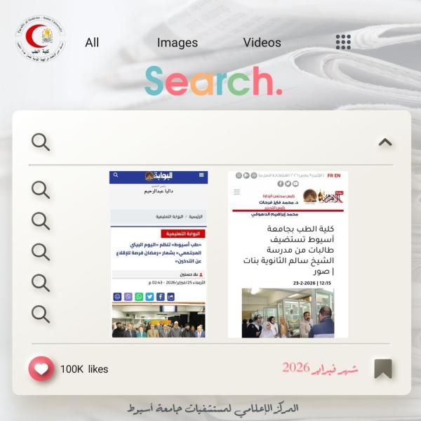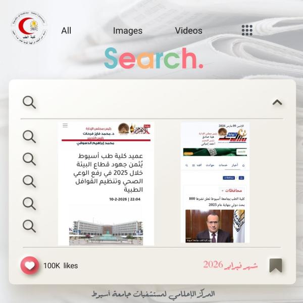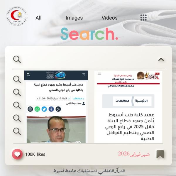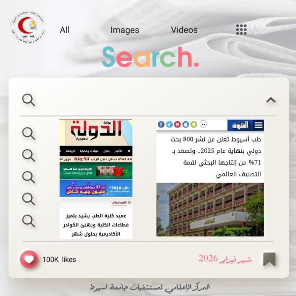 أخبار كلية الطب بجامعة أسيوط في مختلف الصحف والمواقع الإخبارية خلال شهر فبراير الماضي 11 مارس 2026 أخبار كلية الطب بجامعة أسيوط في مختلف الصحف والمواقع الإخبارية خلال شهر فبراير الماضي