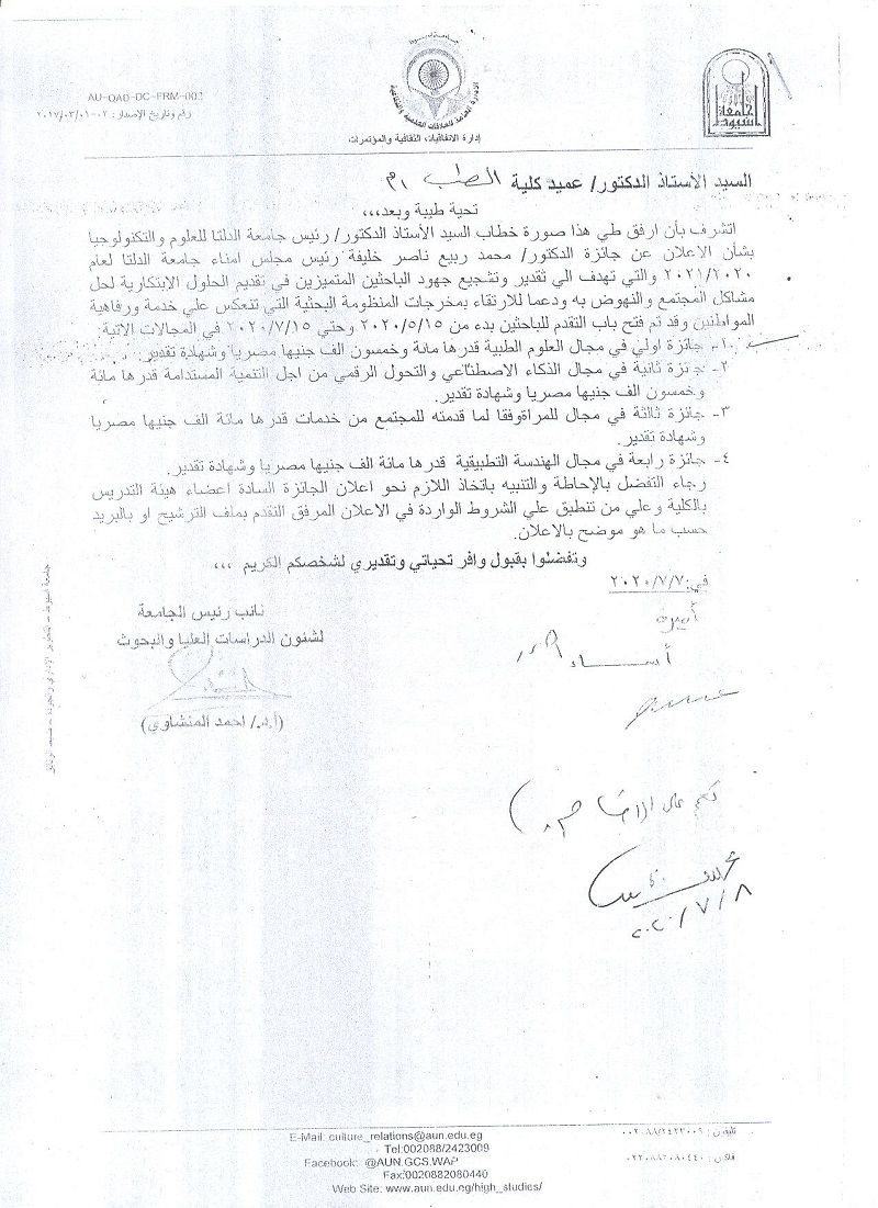 الإعلان عن جائزة الدكتور/ محمد ربيع ناصر خليفة Read more about الإعلان عن جائزة الدكتور/ محمد ربيع ناصر خليفة الإعلان عن جائزة الدكتور/ محمد ربيع ناصر خليفة تصنيف الخبر Alumni 8 يوليو 2020