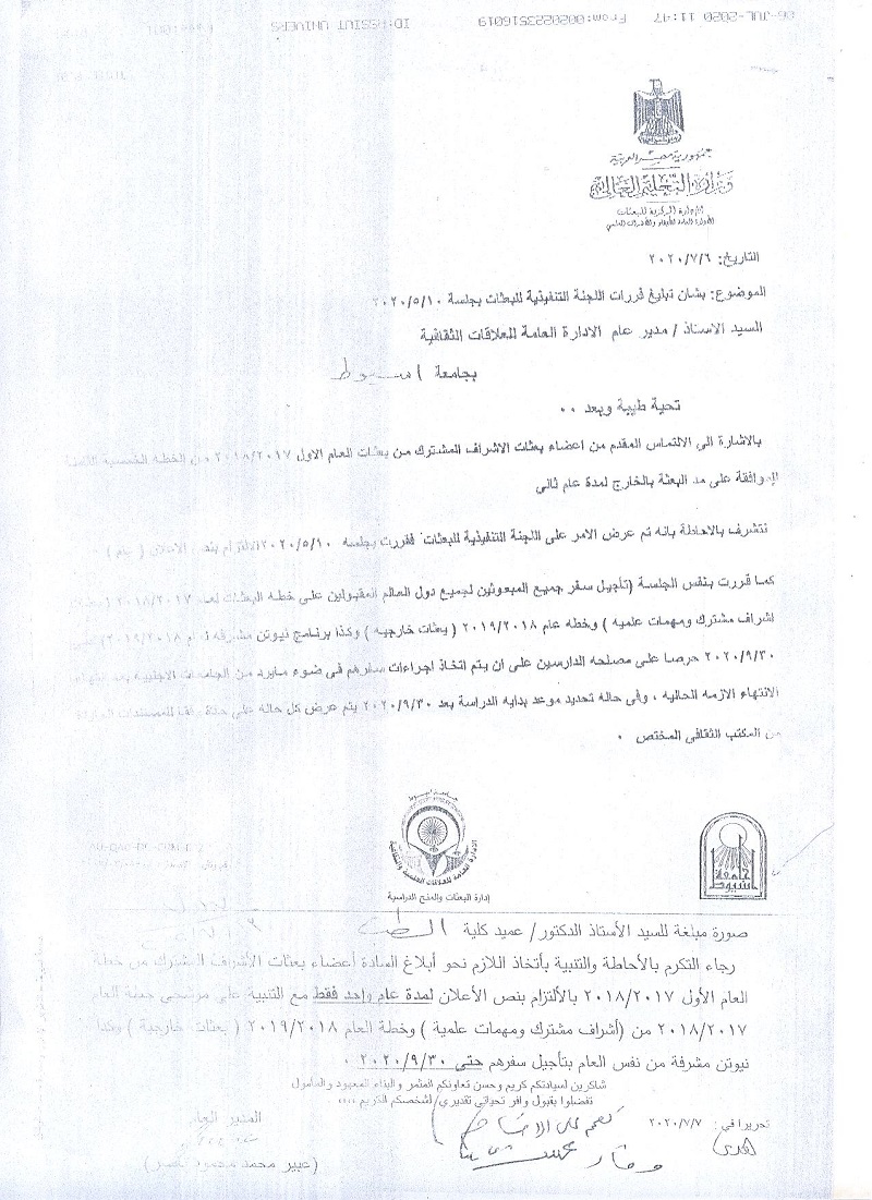 اليوم الخميس الموافق ٢٣ / ٧ /٢٠٢٠مقام السيد الأستاذ الدكتور / علاء عطية - عميد كلية الطب ورئيس مجلس إدارة المستشفيات الجامعية. والسيد أ. د/ سعد زكي - مدير المستشفى الرئيسي. والدكتور / علي عبد العليم - رئيس الإدارة المركزية للشئون الطبية والعلاجية،.. وذلك برفقة ا.د محمد حلمي الحفناوي....المستشار الهندسي للمشروعات والسيدة المهندسة مدير عام الادارة الهندسية بالمستشفي وتفقدوا وحدة القسطرة التداخلية و وحدة الكلى الصناعي ( تحت الإنشاء) والمخازن الرئيسية بسور المستشفى ومجمع المفارم والاستقبال العام والعيادات التخصصية الجديدة والمعامل والبوابات الاليكترونية بمدخل المستشفى الرئيسي. ( تحت الإنشاء) حيث أطمئن سيادته على سير العمل ومعدل الانجاز وأكد على المتابعة المستمرة لهم