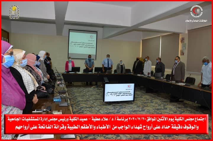 إفتح السيد الأستاذ الدكتور/ علاء عطية - عميد الكلية مجلس الكلية لشهر يوليو 2020