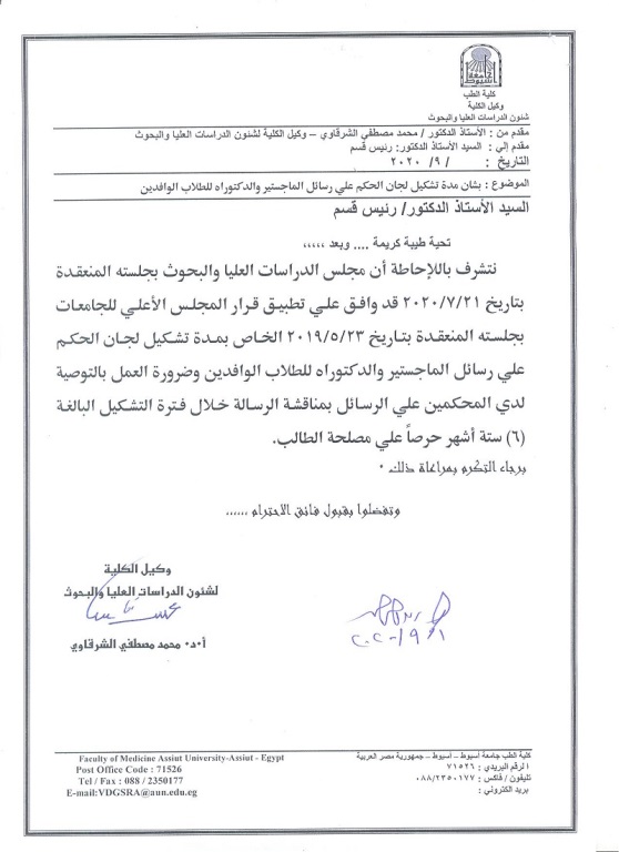 تحت إشراف الأستاذ الدكتور/ عمر ممدوح شعبان - مدير مكتب التصنيف الدولى بجامعة أسيوط