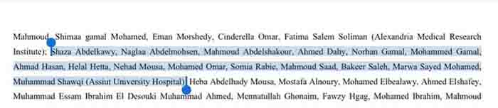 تم البدء بالعمل عليه منذ سنة 2018 شارك في البحث مجموعة من الطلاب وأطباء التدريب وأعضاء هيئة التدريس بكلية الطب جامعة أسيوط وبسبب جائحة كورونا تم تأجيل نشره.
