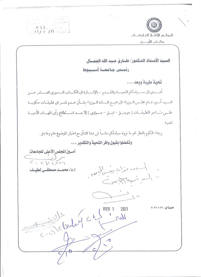 جامعة أسيوط تعلن إنطلاق حملة تطعيم الأطقم الطبية ومعاونيهم ضد فيروس كورونا المستجد يوم الخميس الموافق 18 فبراير 2021.