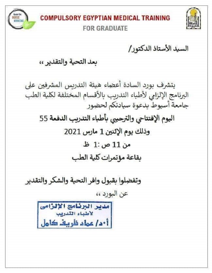 اليوم الإفتتاحي والترحيبي بالدفعة رقم 55 لكلية الطب وبدء برنامجهم الإلزامي كأطباء تدريب