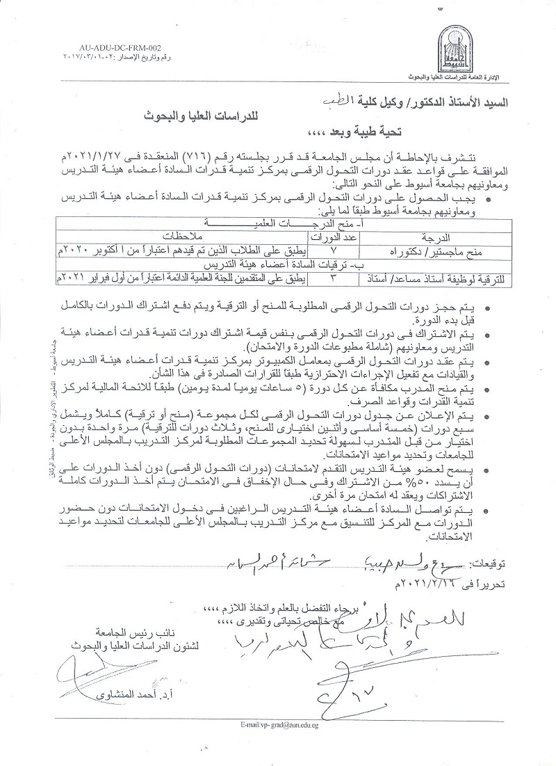قواعد عقد دورات التحول الرقمي بمركز تنمية قدرات السادة أعضاء هيئة التدريس ومعاونيهم