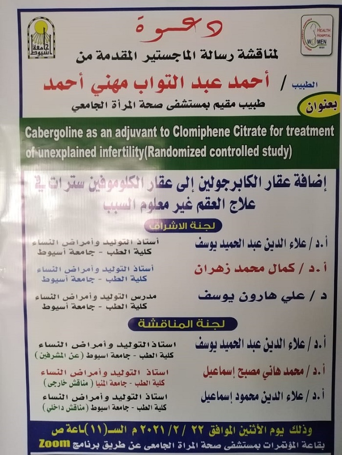 مناقشة رسالة الماجستير الخاصة بالطبيب/ أحمد عبد التواب مهني أحمد - الطبيب بقسم أمراض النساء والتوليد Read more about مناقشة رسالة الماجستير الخاصة بالطبيب/ أحمد عبد التواب مهني أحمد - الطبيب بقسم أمراض النساء والتوليد مناقشة رسالة الماجستير الخاصة بالطبيب/ أحمد عبد التواب مهني أحمد - الطبيب بقسم أمراض النساء والتوليد 18 فبراير 2021
