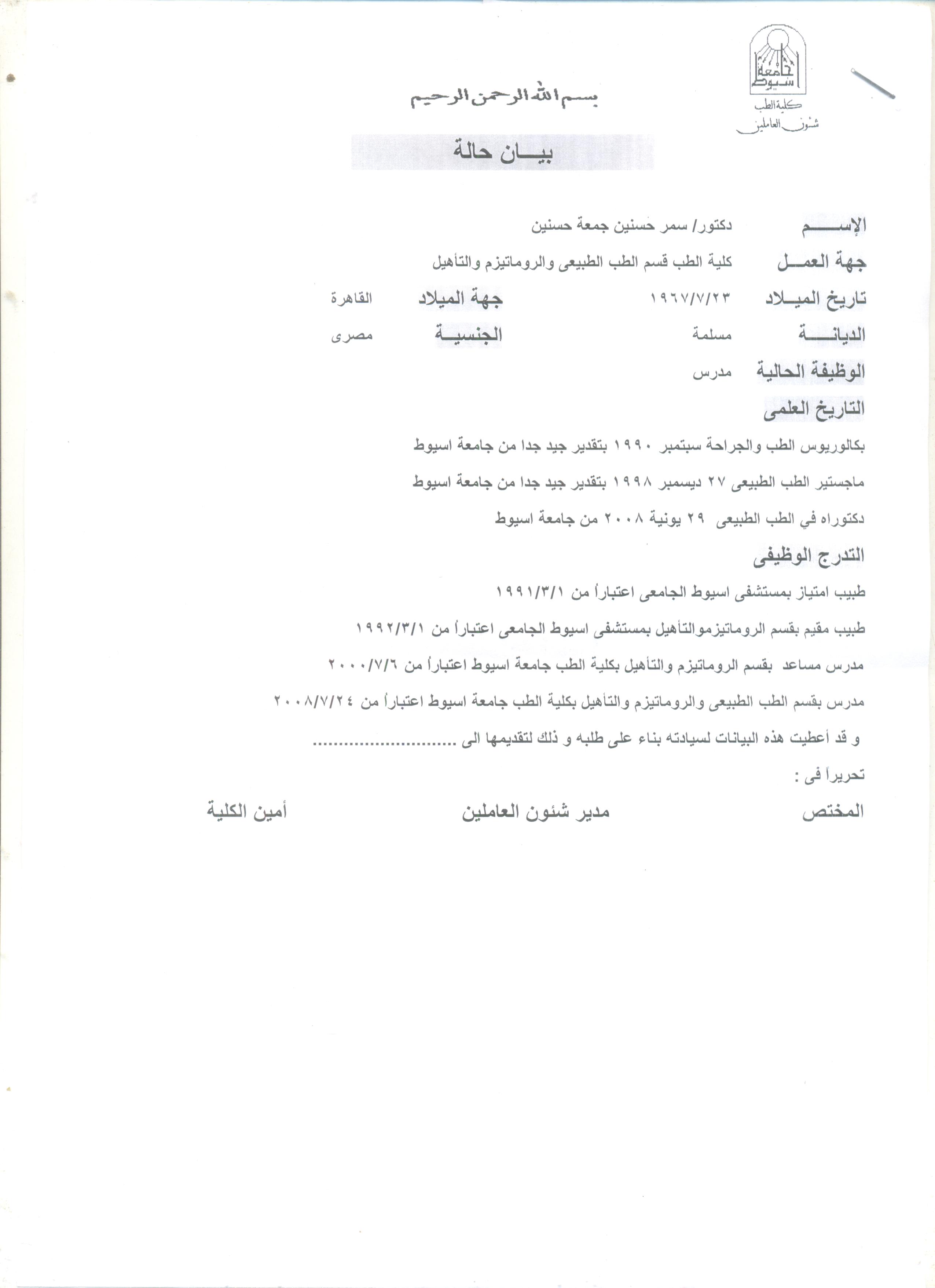 بكالوريوس ﻒﻳ الطب والجراحة () , كلية الطب جامعة أسيوط , 1990