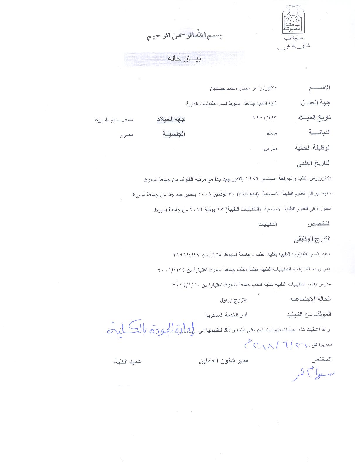 دكتوراه ﻒﻳ () , كلية الطب جامعة أسيوط , 2014