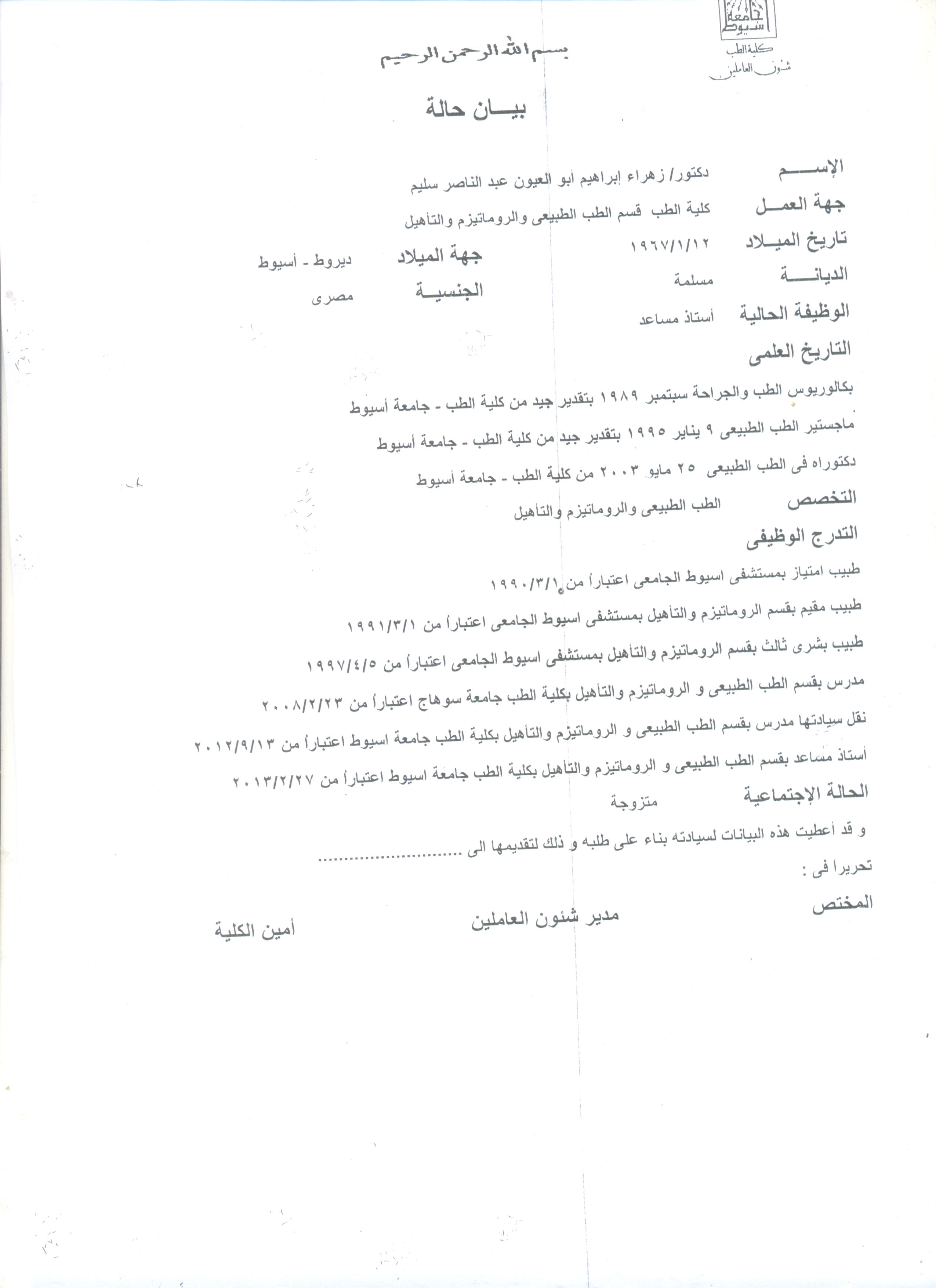 أستاذ مساعد كلية الطب , جامعة أسيوط , 2013