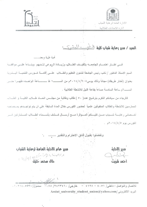 The Quality Assurance Unit at the Faculty of Medicine, Assiut University, organizes a training course for staff on sustainable development