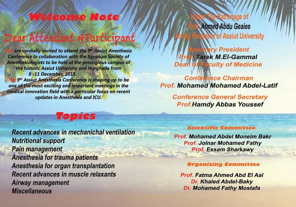 The Department of Anesthesia, Intensive Care, and Pain Management at Assiut University organizes the 13th workshop on therapeutic interventions for pain.