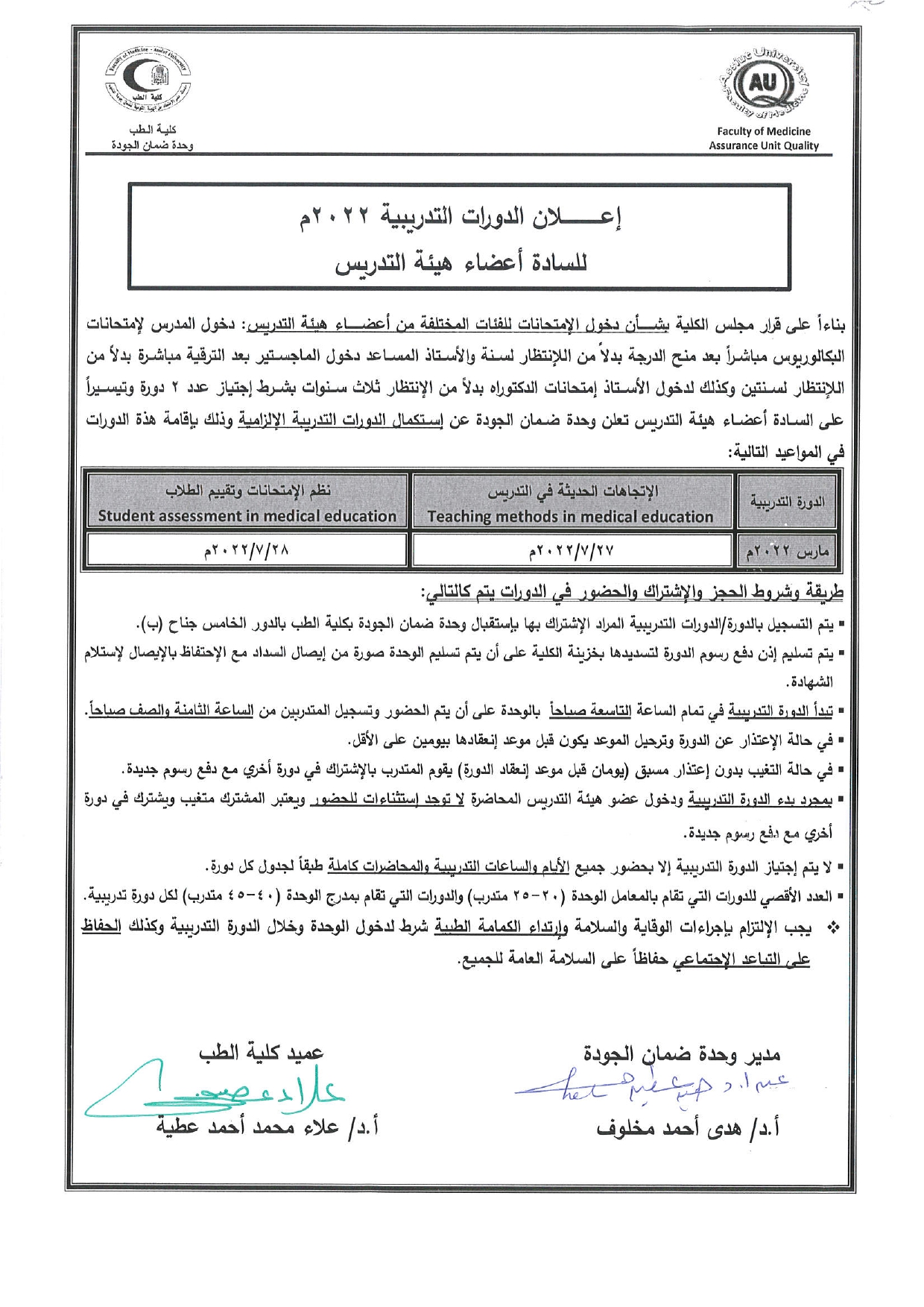 Announcement of training courses for faculty members - in the Quality Assurance Unit