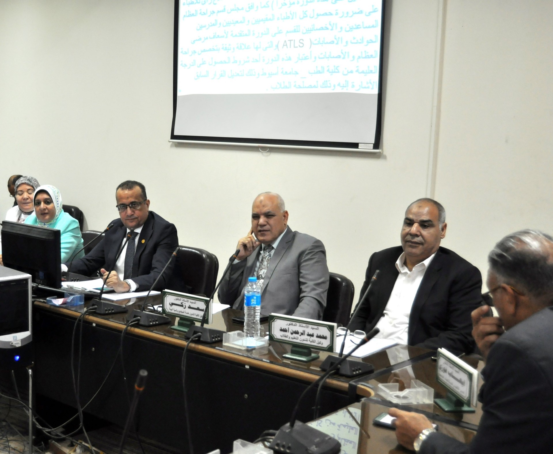 برئاسة الاستاذ الدكتور عميد الكلية و بحضور السادة وكلاء الكلية ورؤساء الأقسام ونقيب اطباء اسيوط ووكيل وزارة الصحة ولفيف من أعضاء هيئة التدريس بالكلية .
