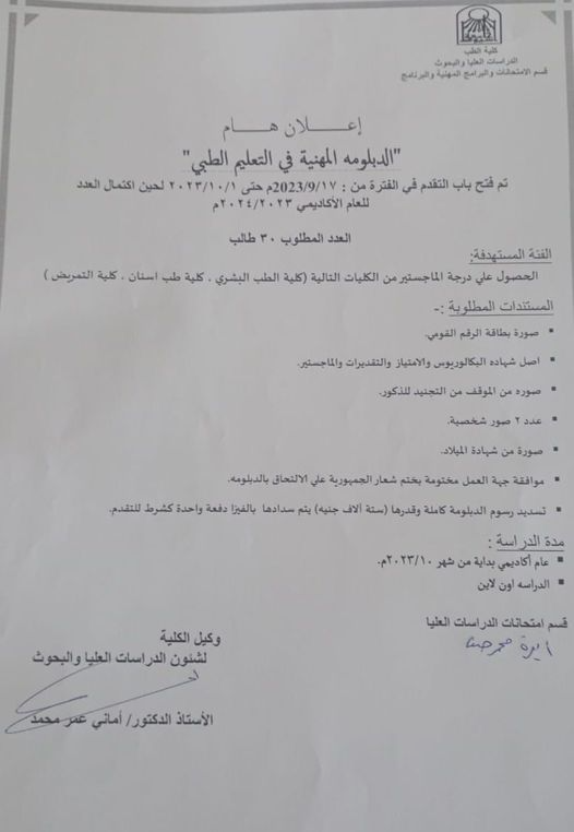 إعلان بشأن الدبلومة المهنيه في التعليم الطبي