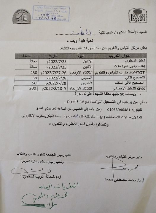 اعلان مركز القياس والتقويم عن عقد دورات تدريبية
