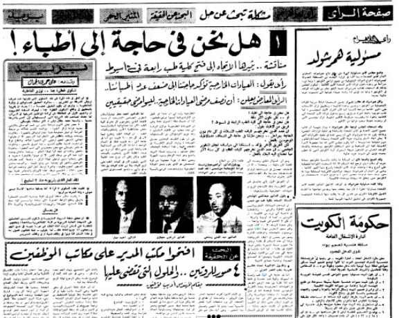 - هل نحن فى حاجة إلى أطباء ... أرشيف الأهرام ، الرابط https://gpa.eastview.com/alahram/newspapers/aar19600810-01.1.6