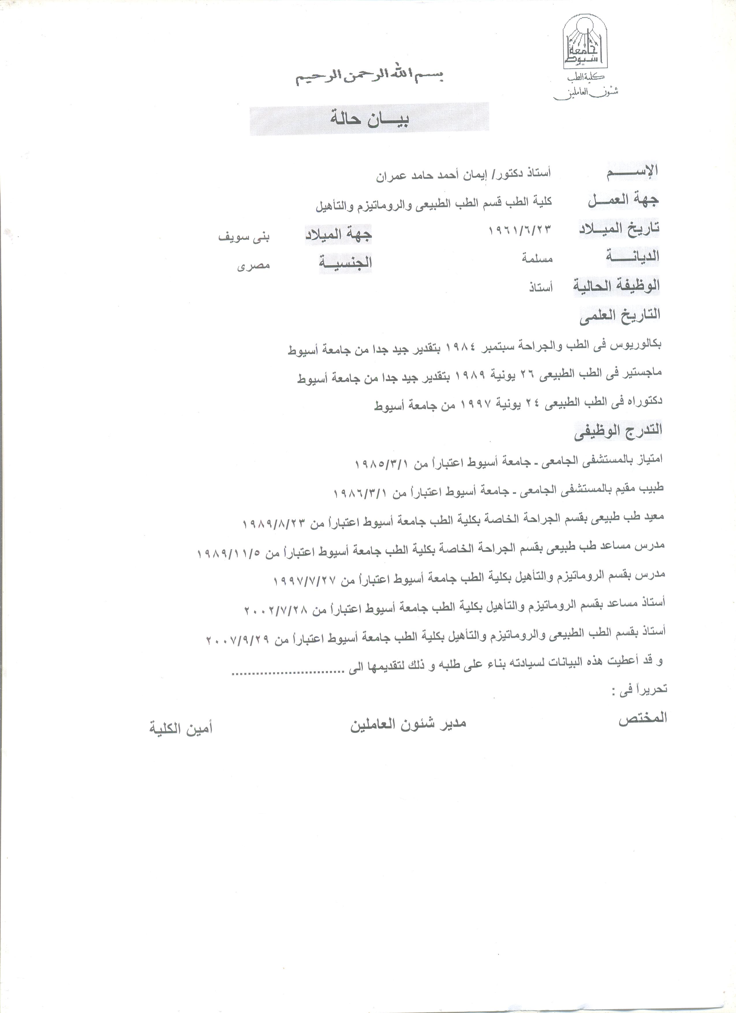 مدرس مساعد كلية الطب , جامعة اسيوط , 1989