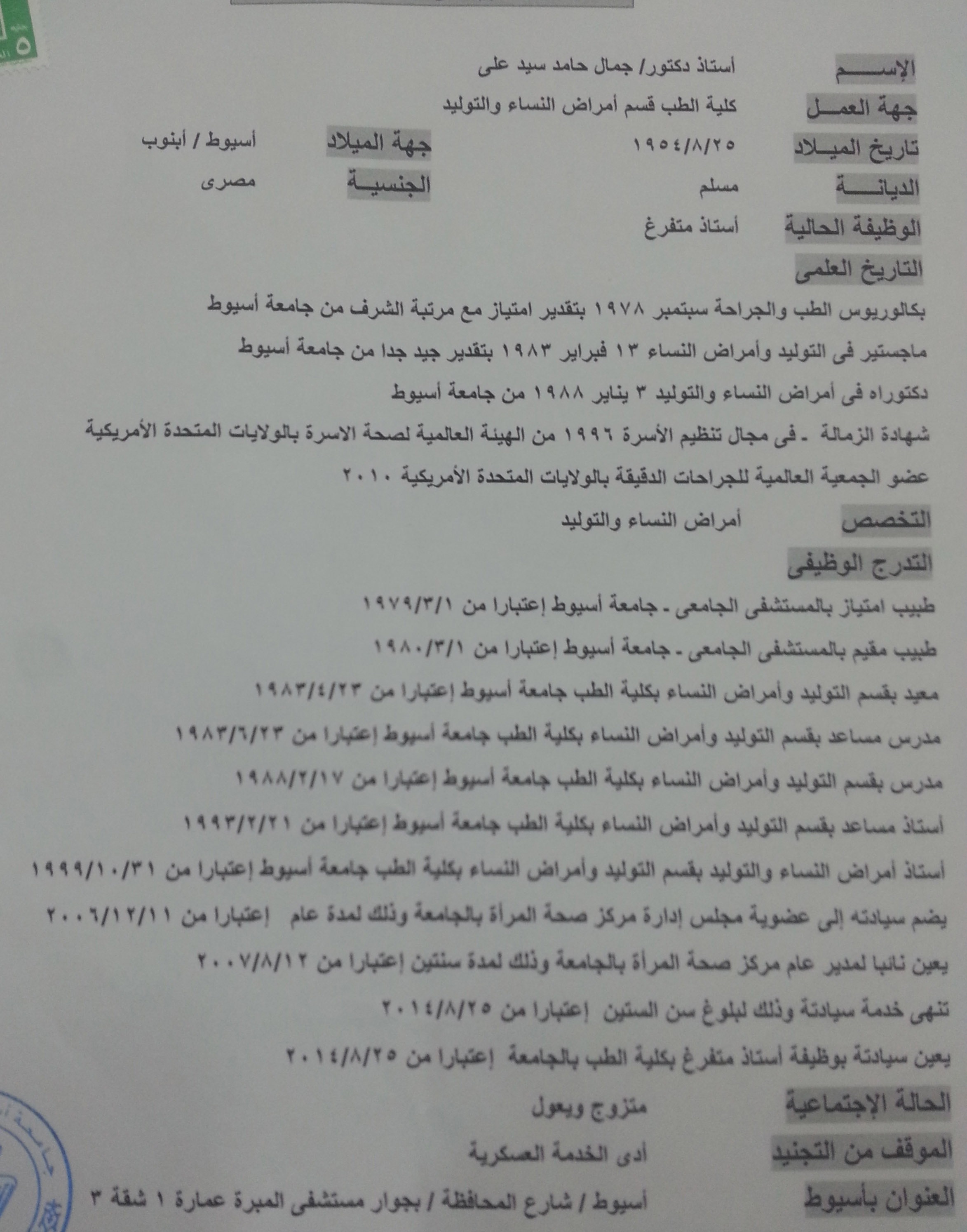 أستاذ كلية الطب , جامعة اسيوط , 1999