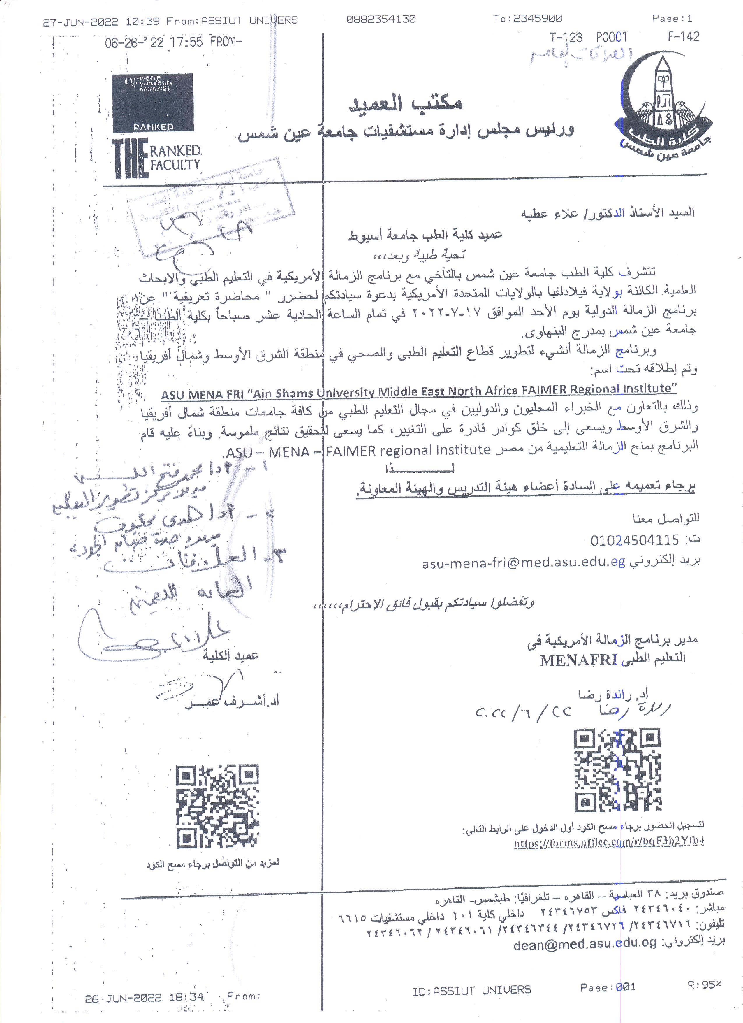 محاضره تعريفيه عن برنامج الزماله الدوليه يوم الاحد 17-7 بكليه الطب جامعه عين شمس بمدرج البنهاوي 28 يونيو 2022