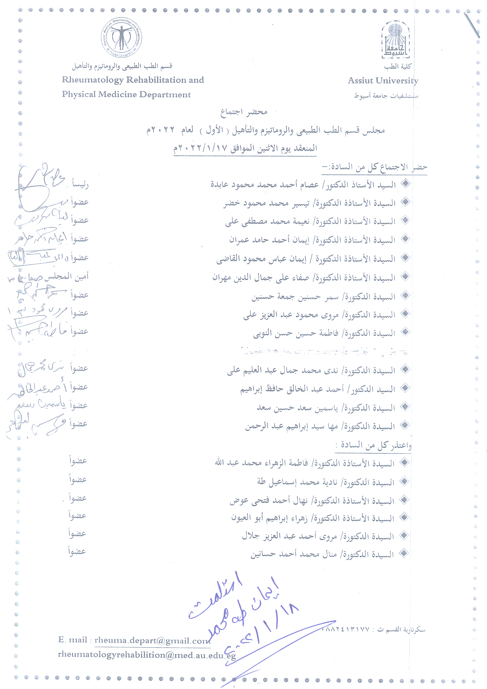 محضر مجلس قسم الطب الطبيعى والروماتيزم والتأهيل - يناير 2022