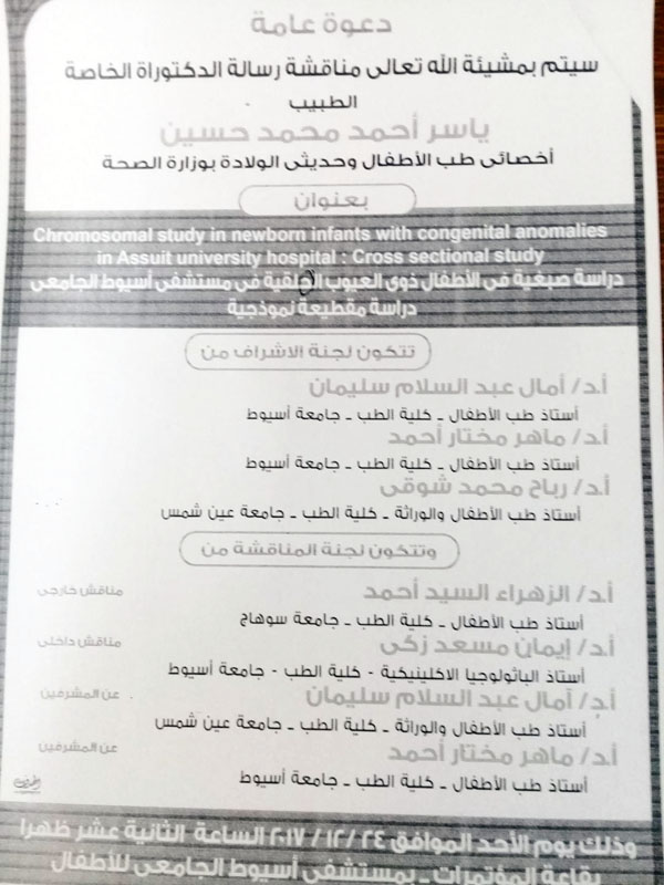 مناقشة رسالة الدكتوراه الخاصة بالطبيب/ ياسر أحمد محمد حسين المدرس المساعد بقسم طب الأطفال Read more about مناقشة رسالة الدكتوراه الخاصة بالطبيب/ ياسر أحمد محمد حسين المدرس المساعد بقسم طب الأطفال مناقشة رسالة الدكتوراه الخاصة بالطبيب/ ياسر أحمد محمد حسين المدرس المساعد بقسم طب الأطفال تصنيف الخبر Alumni 17 ديسمبر 2017