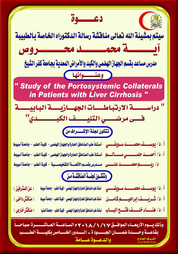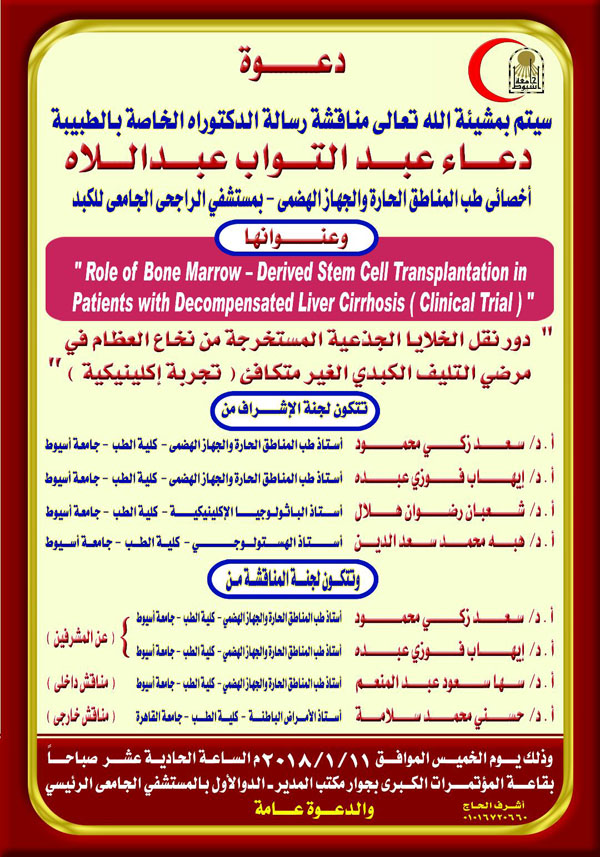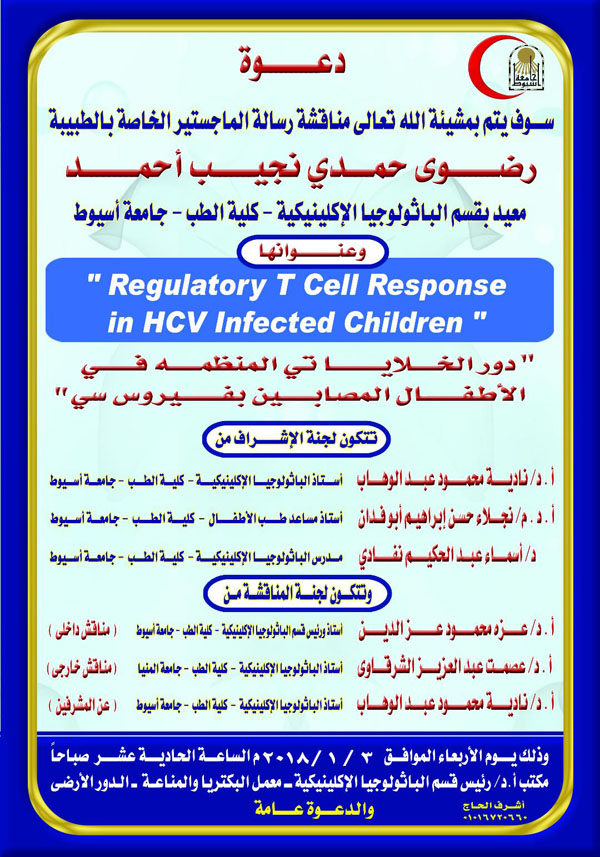 مناقشة رسالة الدكتوراه الخاصة بالطبيبة/ آية محمد محروص المدرس المساعد بقسم طب المناطق الحارة والجهاز الهضمي Read more about مناقشة رسالة الدكتوراه الخاصة بالطبيبة/ آية محمد محروص المدرس المساعد بقسم طب المناطق الحارة والجهاز الهضمي مناقشة رسالة الدكتوراه الخاصة بالطبيبة/ آية محمد محروص المدرس المساعد بقسم طب المناطق الحارة والجهاز الهضمي تصنيف الخبر Alumni 15 يناير 2018