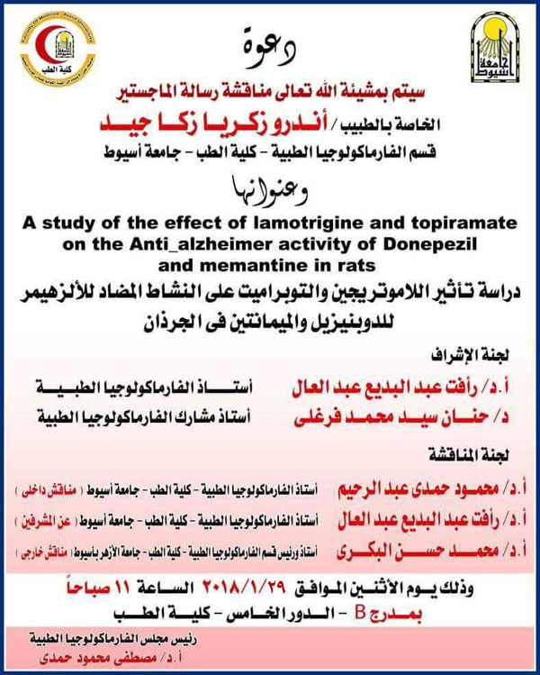 مناقشة رسالة الماجستير الخاصة بالطبيب/ أندرو زكريا زكا جيد الطبيب بقسم الفارماكولوجيا الطبية Read more about مناقشة رسالة الماجستير الخاصة بالطبيب/ أندرو زكريا زكا جيد الطبيب بقسم الفارماكولوجيا الطبية مناقشة رسالة الماجستير الخاصة بالطبيب/ أندرو زكريا زكا جيد الطبيب بقسم الفارماكولوجيا الطبية تصنيف الخبر Alumni 28 يناير 2018