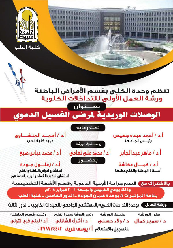 ورشة العمل الأولى للتداخلات الكلوية بوحدة الكلى بقسم أمراض الباطنة Read more about ورشة العمل الأولى للتداخلات الكلوية بوحدة الكلى بقسم أمراض الباطنة ورشة العمل الأولى للتداخلات الكلوية بوحدة الكلى بقسم أمراض الباطنة تصنيف الخبر Alumni 30 يناير 2018